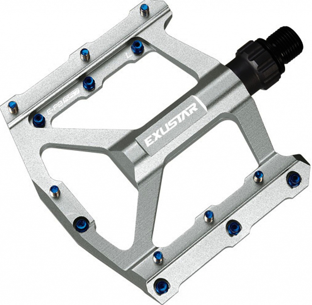 Nízkoprofilové pedály Exustar E-PB557 jsou vyrobené z eloxovaného hliníku s CrMo osou a tenkým ložiskovým systémem (LSL). Pro lepší kontakt s botou jsou pedály po obou stranách opatřené protiskluzovými vyměnitelnými piny. Pedály jsou určené pro náročnější použití (Trail, AM, BMX, Enduro, Freeride, Downhill).