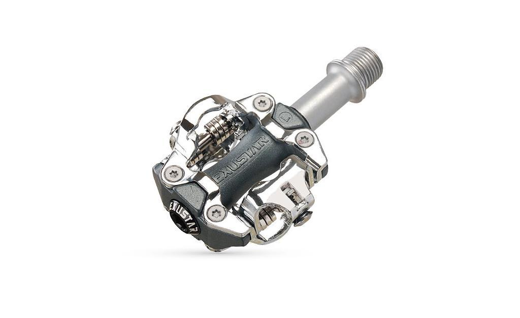 Bílé nášlapné MTB pedály Exustar E-PM213-WH mají odolné hliníkové tělo s osou CrMo a tenkým dvojitým ložiskovým systémem. Kufry EPS-M jsou kompatibilní se systémem Shimano MTB. Tenzometr (měřič odporu) umožňuje přesné nastavení síly odporu. CrMo osa je obráběná CNC.