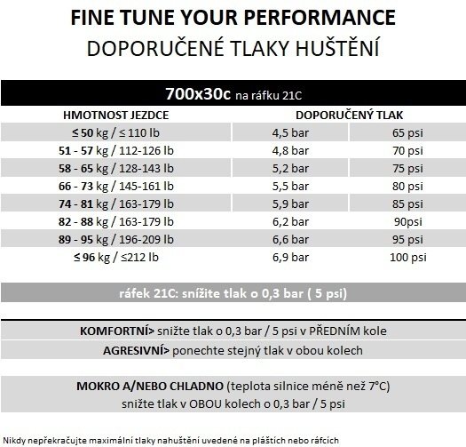 - Doporučená šířka ráfku: 21C (700x30c)