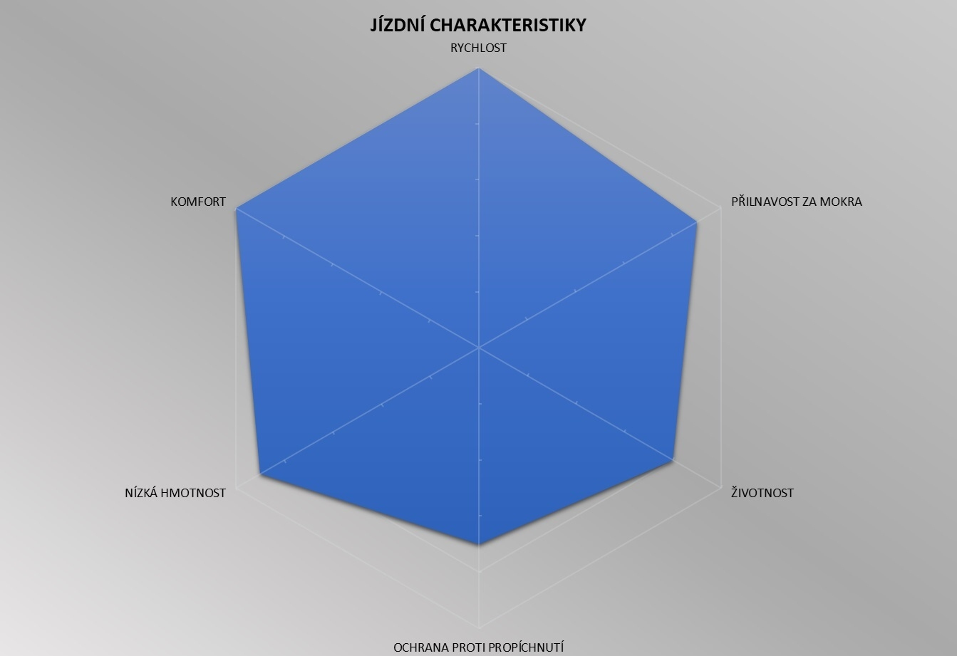 - Patentovaná technologie SpeedCORE™ zahrnuje tenkou vrstvu gumové směsi s aramidovými částicemi, což umožnilo zmenšit strukturu a celkovou tloušťku pláště, čímž se snížil valivý odpor.
