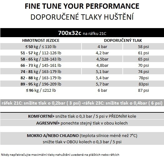 - Doporučená šířka ráfku: 21C (700x32C)