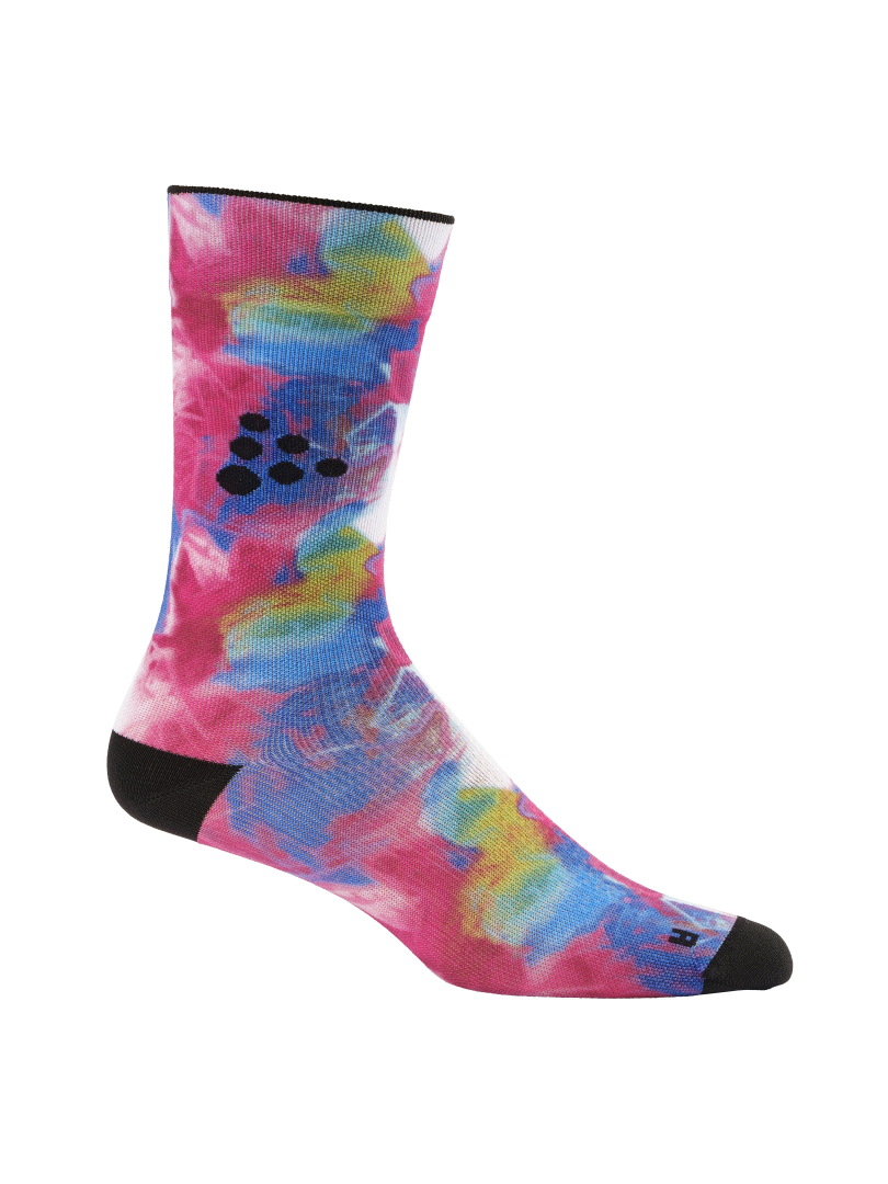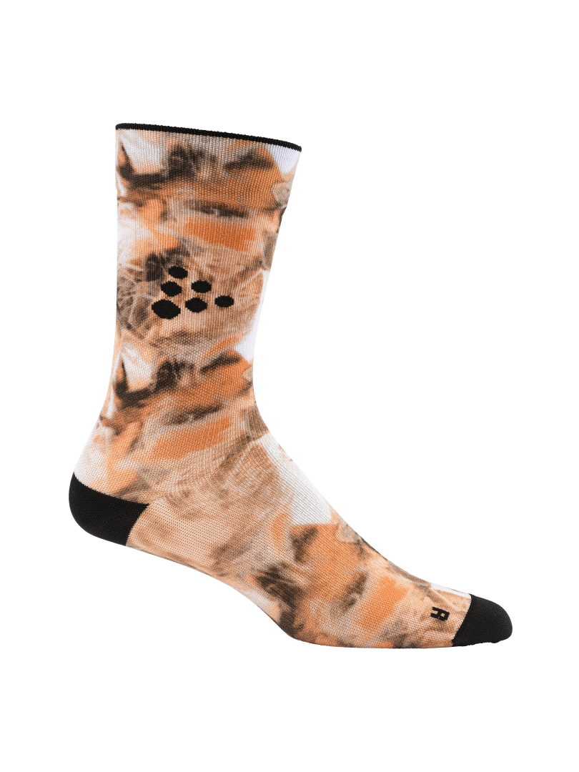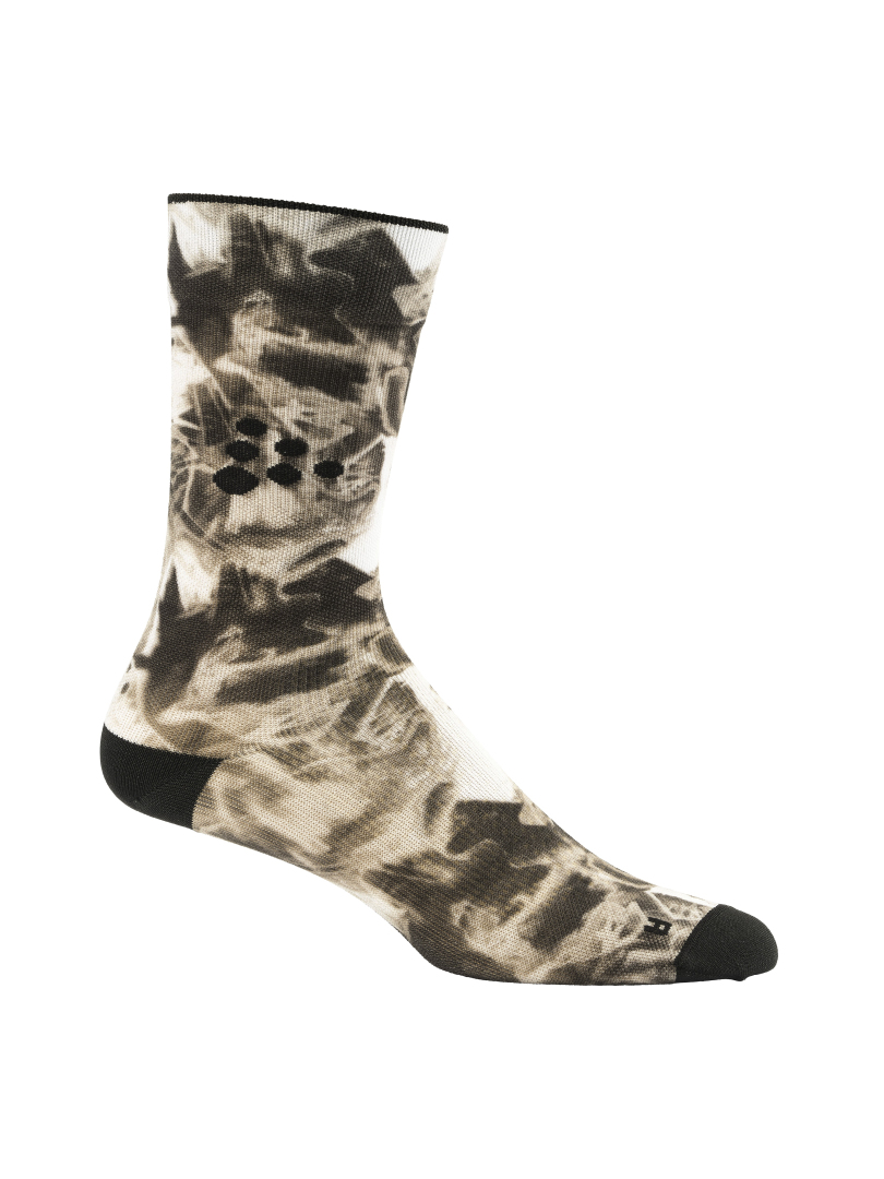Běžecké ponožky CRAFT PRO Hypervent Print pro všechny typy běhu. Materiál: 52% polyamid, 43% recyklovaný polyester, 5% Elastan - zesílená oblast špičky a paty - meshové panely pro vyšší prodyšnost - ergonomický střih - logo Craft nad kotníkem