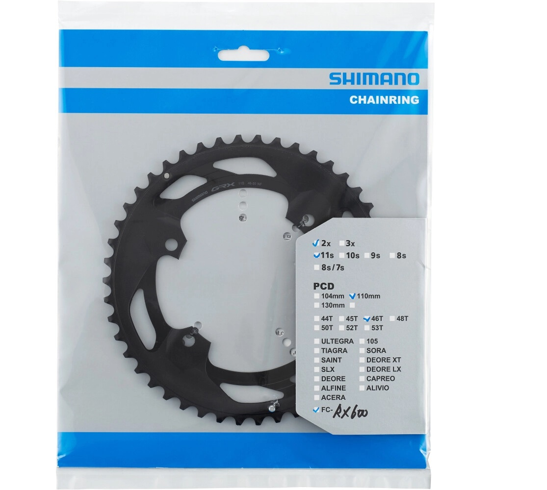 Y0K698010, AL převodník Shimano GRX600 počet zubů: 46, rozteč: 110mm, pro 2x11 speed pro kombinaci 46-30z čtyřpacka černý