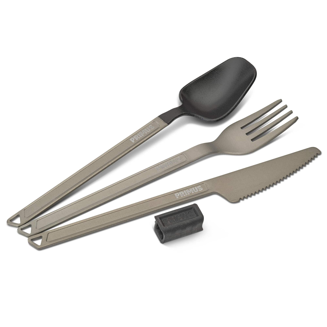 PRIMUS Trek Aluminium je kompaktní a lehká příborová sada. Nůž, vidlička a lžíce jsou vyrobeny z robustního tvrdě eloxovaného hliníku a lžíce má keramický povrch pro zachování chuti jídla a rychlé a bezproblémové čištění na cestách. Všechny tři díly jsou úhledně uloženy v měkkém silikonovém pouzdře pro snadné balení.