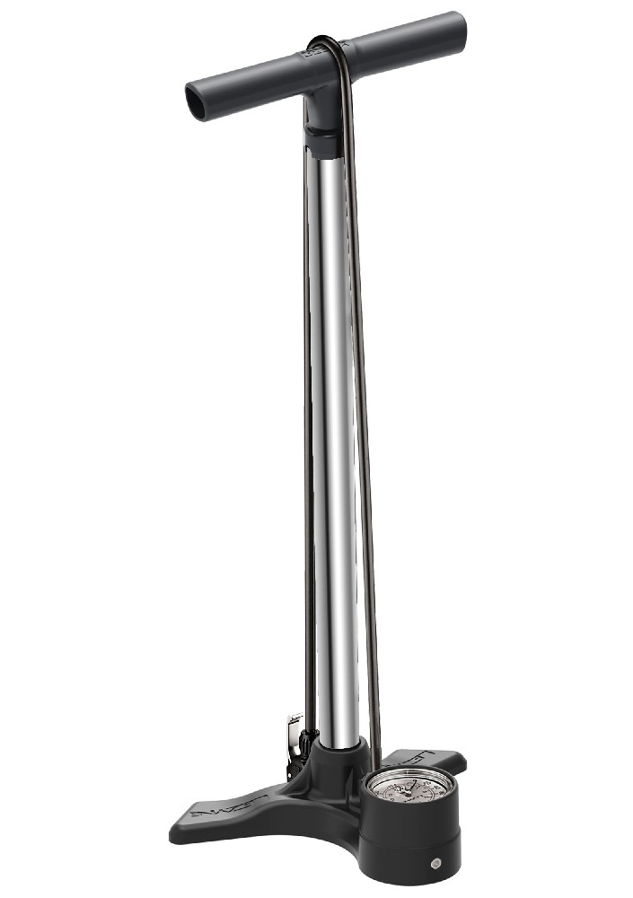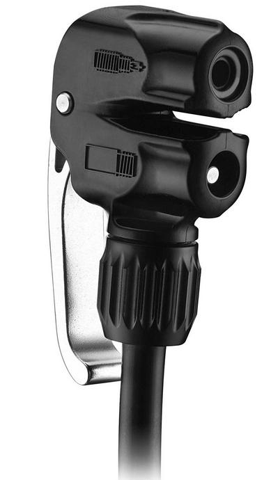 Velká nožní pumpa s ocelovým pístem a válcem. Extra dlouhá hadice s dvojitou koncovkou pro oba typy ventilků, držadlo a stupačky jsou vyrobeny z kompozitního materiálu, dlouhý píst se zmenšeným válcem snižuje úsilí pumpování.