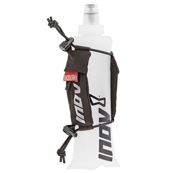 Flask o objemu 0,25 litru s jednoduchou možností doplňování tekutiny kdekoliv a kdykoliv v přírodě. Poddajný materiál flasku se příjemně drží v dlani, elastický popruh, kterým drží flask na dlani obsahuje 2 malé kapsičky na gel, případně na klíče. Popruh je dostatečně dlouhý na jakoukoliv velikost dlaně, finální pozici zafixujete dvěma sponkami. Pod odpíjení tekutiny doporučuji dofukovat flask "dudlíkem", mnohem lépe se při běhu drží. Jedinou nevýhodou tak zůstává ohřívání tekutiny dlaní při běhu. Geniální řešení pro jakékoliv běhy, pokud nechcete sebou tahat batoh, vestu nebo ledvinku… Váha: 17g
