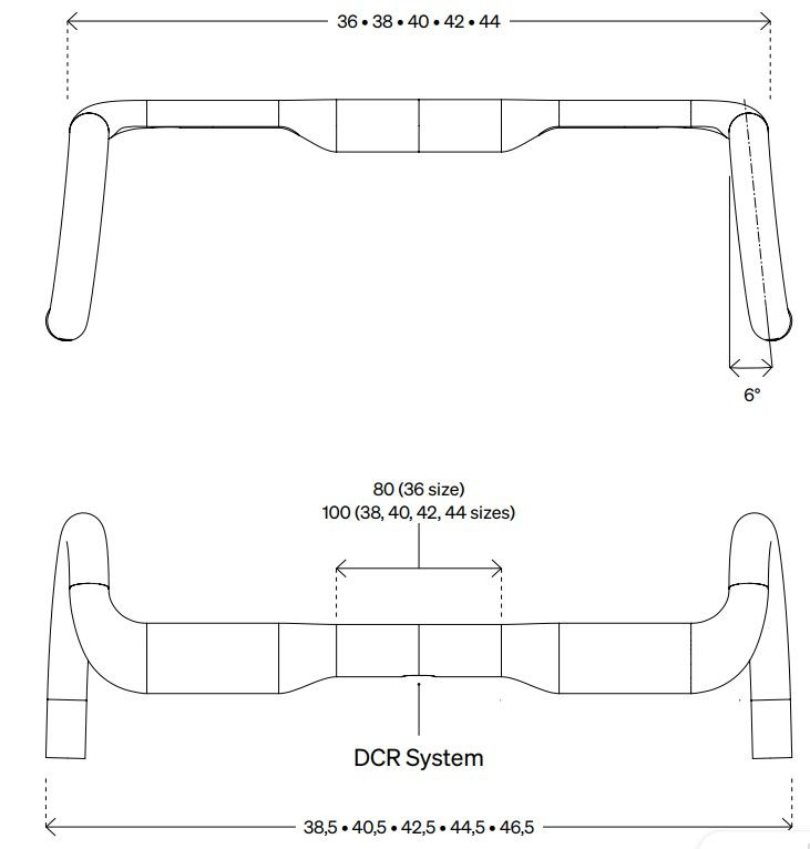 ŘÍDÍTKA DEDA SUPERZERO RS ALU Deda Superzero RS Alloy jsou silniční řídítka určená pro jezdce, kteří hledají ideální rovnováhu mezi výkonem, precizním ovládáním a moderním designem. Lehká a pevná slitina Alloy 7050 zajišťuje vysokou tuhost při zachování nízké hmotnosti. Ergonomický tvar RHM-EVO s dosahem 75 mm a dropem 120 mm poskytuje pohodlnou a přirozenou jízdní pozici s plynulým přechodem mezi horním a spodním úchopem. 6° flare (rozšíření spodní části) zlepšuje stabilitu a kontrolu, zejména v rychlých sjezdech a na technicky náročných úsecích. Řídítka jsou kompatibilní se systémem DCR (Deda Internal Cable Routing), který umožňuje plnou integraci kabeláže uvnitř řídítek – za předpokladu, že to rám kola podporuje. Díky 100mm upínací ploše je možné snadno upevnit cyklopočítače, světla i clip-on nástavce Deda (JET, Fast Pro, Parabolica Pro). Technická specifikace: Materiál: Alloy 7050 Průměr upnutí: 31,7 mm Tvar: RHM-EVO Reach: 75 mm Drop: 120 mm Flare: 6° (+ 2,5 cm) Outsweep: 0° Šířky: 44 cm (kraj – kraj) Celková šířka: 46,5 cm Hmotnost: 285 g (šířka 42 cm) Povrchová úprava: POB (Polish on Black) Kabeláž: DCR kompatibilní až pro 4 kabely