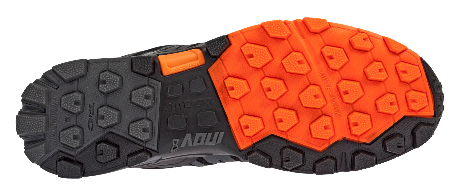 ROCLITE je nejvíce multisportovní koncept v současné nabídce. Brilantní podešev je složena ze tří různě tvrdých částí (tric), je vyvíjena pro mix různých povrchů, primárně pro alpské prostředí, v patní části efektivnějí rozkládá došlapovou energii u patařů (terradapter), v přední části umožňuje efektivní vedení odrazu (metaflex). Výška špuntů je 6mm a větší plocha špuntů zajišťuje výbornou adhezi při delším běhu nebo celodenním treku na různém povrchu od bláta, přes kameny, suťoviště až po asfalt. Mezi podešví a mezipodešví je vložena polymerová výztuha (meta-plate), která jednak ochraňuje chodidla proti proražení mezipodešve a zároveň kopíruje pohyb plantární fascie. Přední část zůstává bez výztuhy, aby byl zachován cit pro přesný odraz. Parametry mezipodešve jsou pata 11mm, špička 7mm, drop 4mm, mezipodešev powerflow nabízí v patní části o cca 10% vyšší míru tlumení, přední část je naopak tvrdší pro účinné a přesné vedení odrazu. Svršek je tvarován na středně širokém kopytě (meduim), je velmi pevný, nenasákavý s obsázkou kolem vnějšího obvodu, špička je trojitě vyztužena a podšívka svršku je opatřena GORE-TEX membránou. Pro maximální prodloužení životnosti svršku je celá přední část boty vyrobena z kevlarového materiálu X-PROTEK. Negativum takhle pevného materiálu je ovšem snížená prodyšnost této boty. Originální systém šněrování (adapterweb) citlivě, ale přitom stabilně upne botu k nártu chodidla. Našitím jazyko přímo na hrany svršku bylo docíleno vyššího komfortu v botě, lepšímu upnutí k nártu, a ve velké míře se zabránilo vnikání nečistot a vody dovnitř boty.Termoplastický externí opatek (ehc) má tvar písmene X, lépe fixuje zadní část boty k patám a kotníku a přitom nijak výrazně neomezuje práci achilovek. Lehká, multisportovní, outdoorová bota v kotníkovém provedení. Váha : 320g (UK8) Výška vkládací stélky: 6mm Značková recenze http://inov-8.blogspot.cz/2017/02/recenze-konceptu-r-o-c-l-i-t-e.html Značkové video https://www.youtube.com/watch?v=kK0WYYipjb8