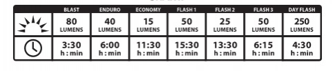 přední blikačka se 7mi režimy a impozantním výkonem až 250 Lm.