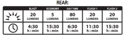 zadní blikačka s 8-funkcemi a výkonem až 80 Lm.