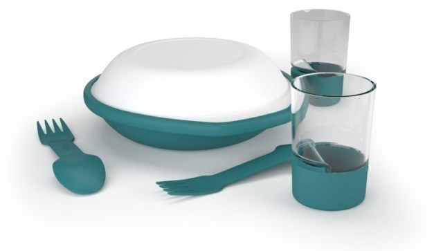 Exkluzivní outdoorový jídelní set pro dvě osoby. Vyrobeno ze zdravotně nezávadných materiálů neobsahujících Bisphenol A (BPA). Možno mýt v myčce. Speciální úchyty pro připevnění skleničky k talíři pro vysokou stabilitu a jednoduchou manipulaci v jedné ruce. Vyrobeno ve Švédsku.