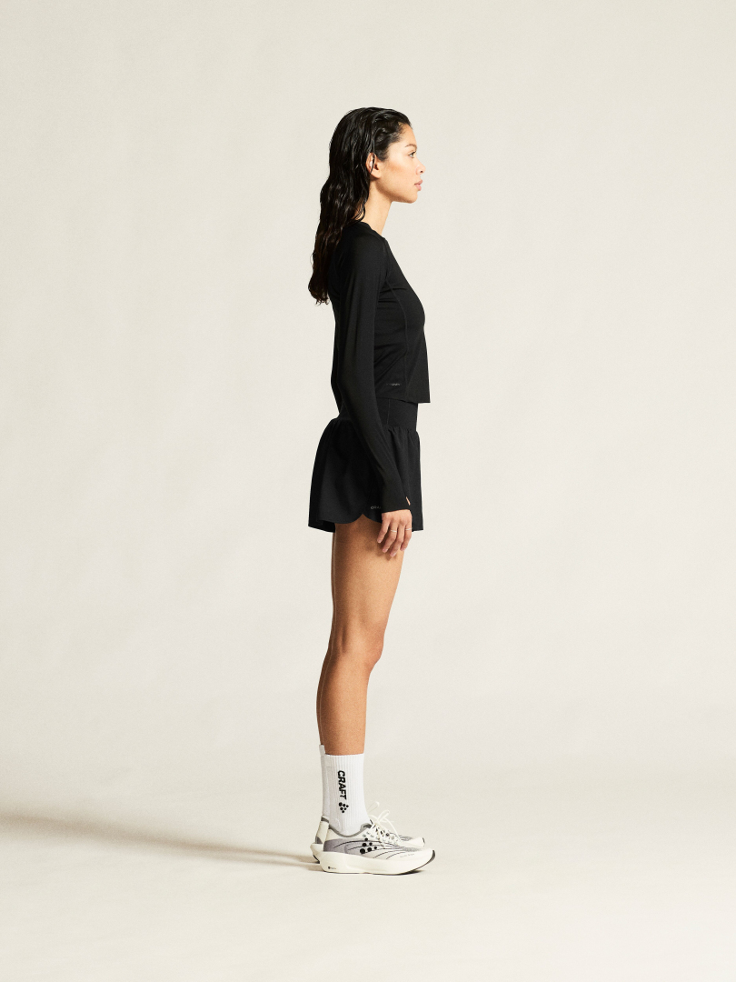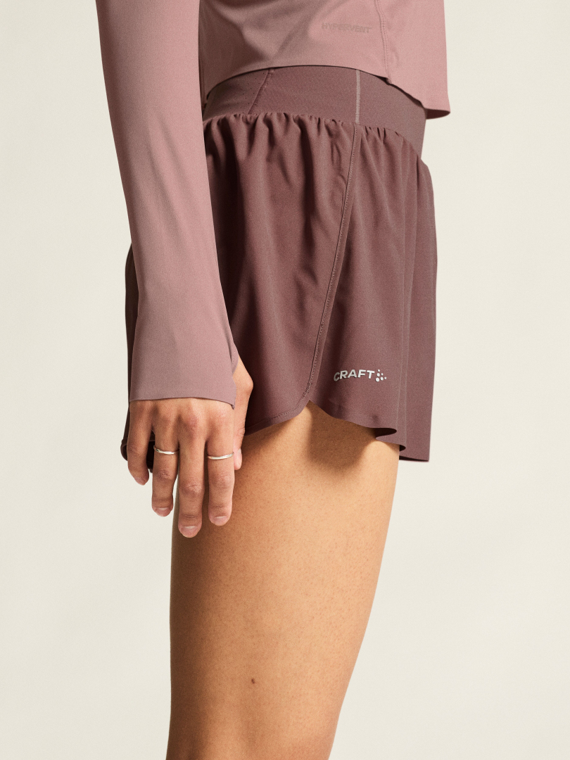 Velmi lehké běžecké šortky CRAFT Hypervent Wide zaujmou na první pohled jednoduchým, ale atraktivním designem. Jsou určeny pro ty běžkyně, které chtějí vysoce funkční šortky v širším a komfortním střihu. Kombinace funkčních syntetických vláken s elastanem zajišťuje efektivní odvod vlhkosti, optimální ventilaci a maximální komfort i ve velmi teplých dnech. Široký pas šortky skvěle usadí a navíc disponuje třemi bederními kapsami pro uložení drobností.