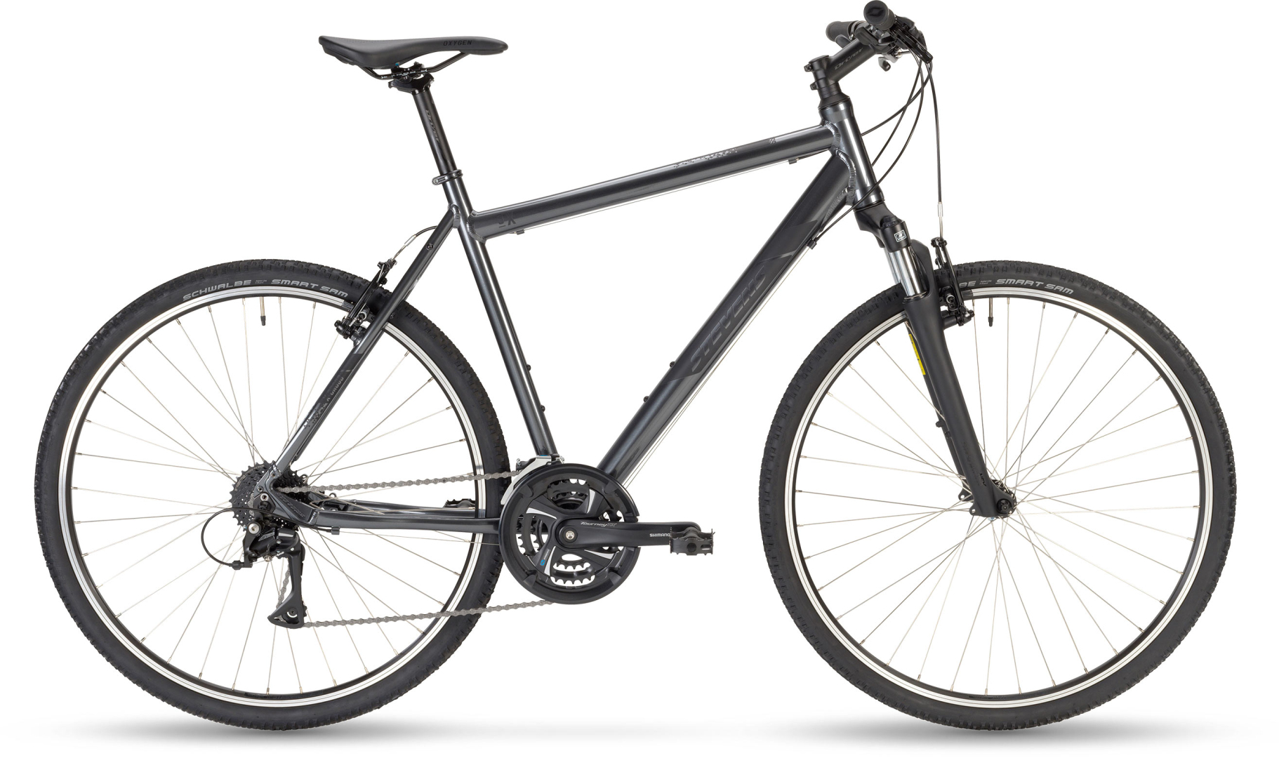 Pláště Schwalbe Smart Sam v šířce 42 mm zajišťují jistotu na asfaltu i zpevněných cestách. Kolo je osazeno komponenty Oxygen Driver, které poskytují komfortní posed a dobrou kontrolu.
