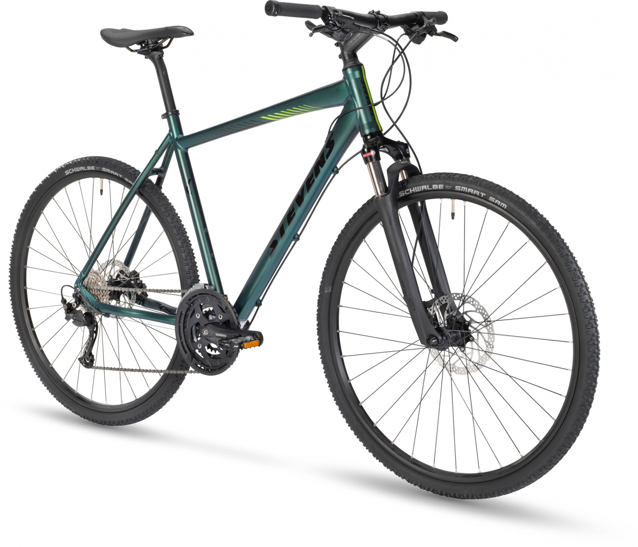 Rychlé krosové kolo s aerodynamickým vzhledem, které vás zároveň překvapí svým komfortem. Stevens 5X využívá precizně zpracovaný, třikrát zeslabovaný hliníkový rám se sportovní geometrií, a přitom stále poměrně vzpřímeným posedem. Tuto kombinaci si užijete při krátkých vyjížďkách po cyklostezkách, ve městě i na víkendovém cykloturistickém výletě. Do osazení spadají spolehlivé komponenty Shimano, SR Suntour, Oxygen či Schwalbe.