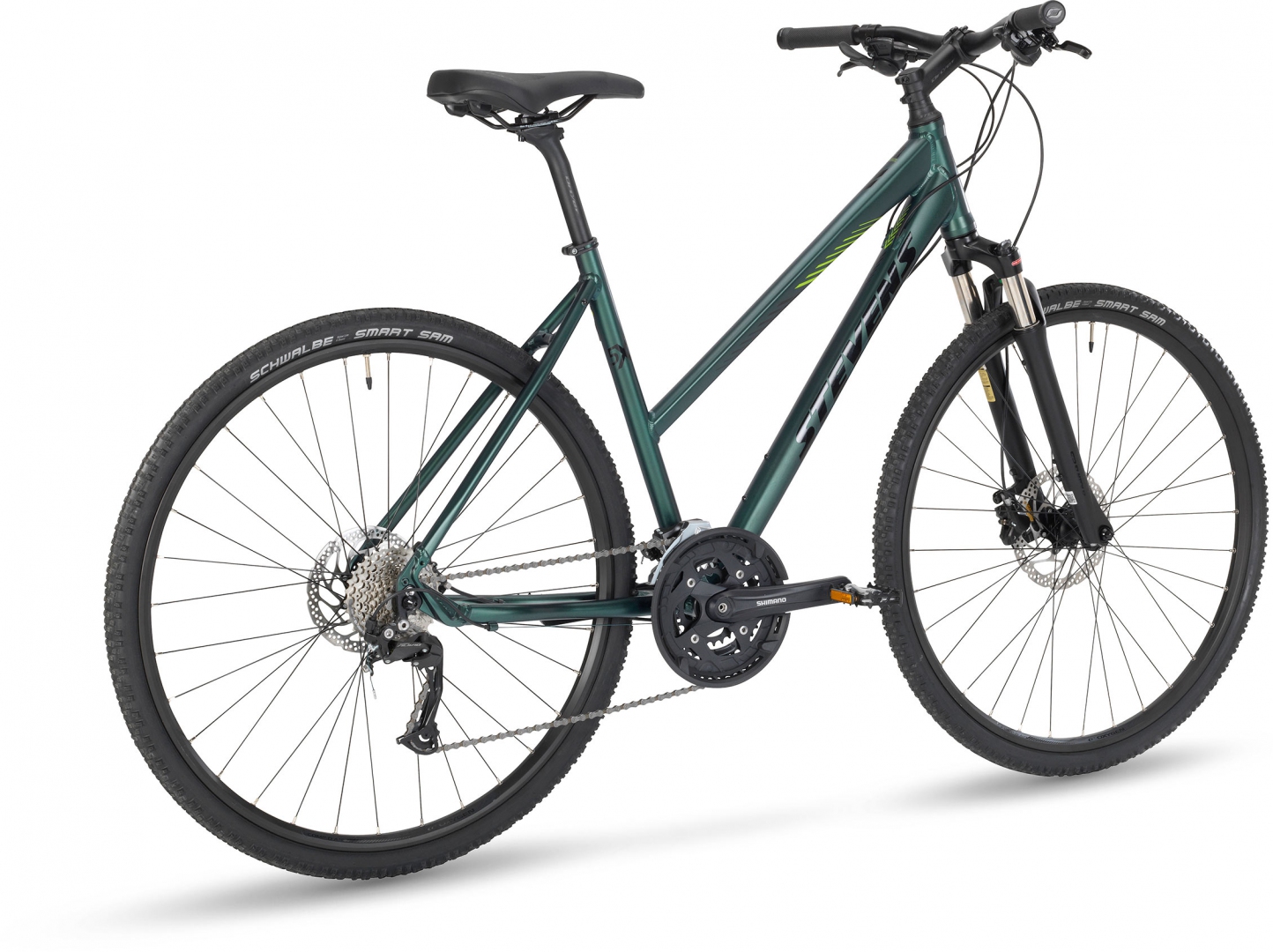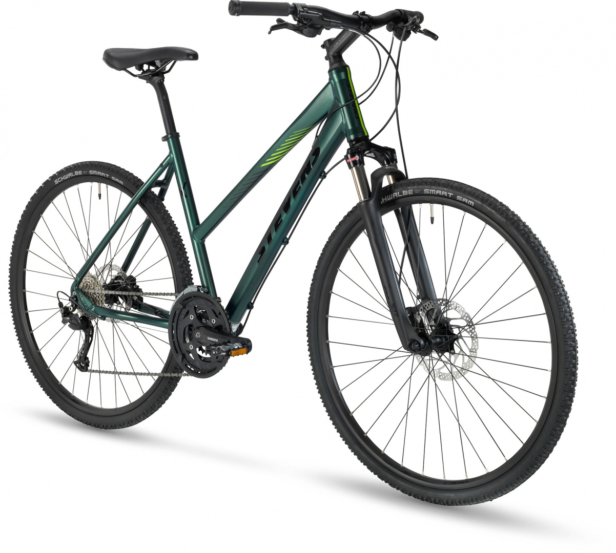 Rychlé krosové kolo s aerodynamickým vzhledem, které vás zároveň překvapí svým komfortem. Stevens 5X využívá precizně zpracovaný, třikrát zeslabovaný hliníkový rám se sportovní geometrií, a přitom stále poměrně vzpřímeným posedem. Tuto kombinaci si užijete při krátkých vyjížďkách po cyklostezkách, ve městě i na víkendovém cykloturistickém výletě. Do osazení spadají spolehlivé komponenty Shimano, SR Suntour, Oxygen či Schwalbe.