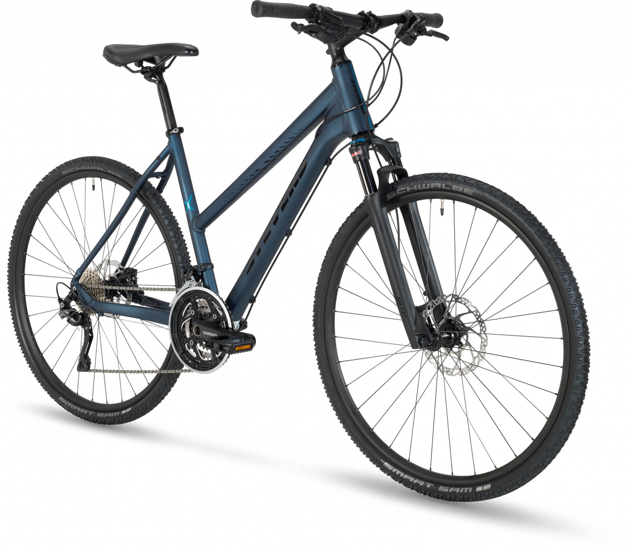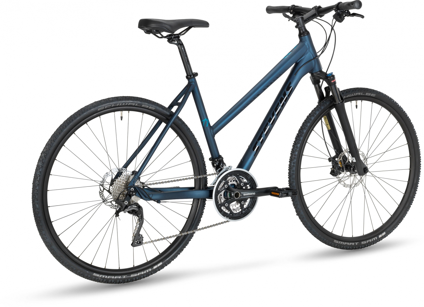 Schopné téměř jako horské kolo, ale na silnici mnohem rychlejší. Stevens 7X je jedním z vrcholů mezi krosovými koly od německého výrobce. Při jízdě vás okamžitě přesvědčí svým jistým projevem, lehkostí a naprosto samozřejmou chutí zrychlovat. Může se pochlubit elegantním rámem a především výbavou, kterou si rychle zamilujete, ať už se chystáte brázdit cyklostezky, polní cesty nebo ulice města. Základem výbavy je spolehlivý 3x10rychlostní pohon Shimano se zadní přehazovačkou Deore XT Shadow, hydraulické kotoučové brzdy Shimano BR-M6000 a vzduchová odpružená vidlice SR Suntour s kónickým sloupkem a lockoutem.