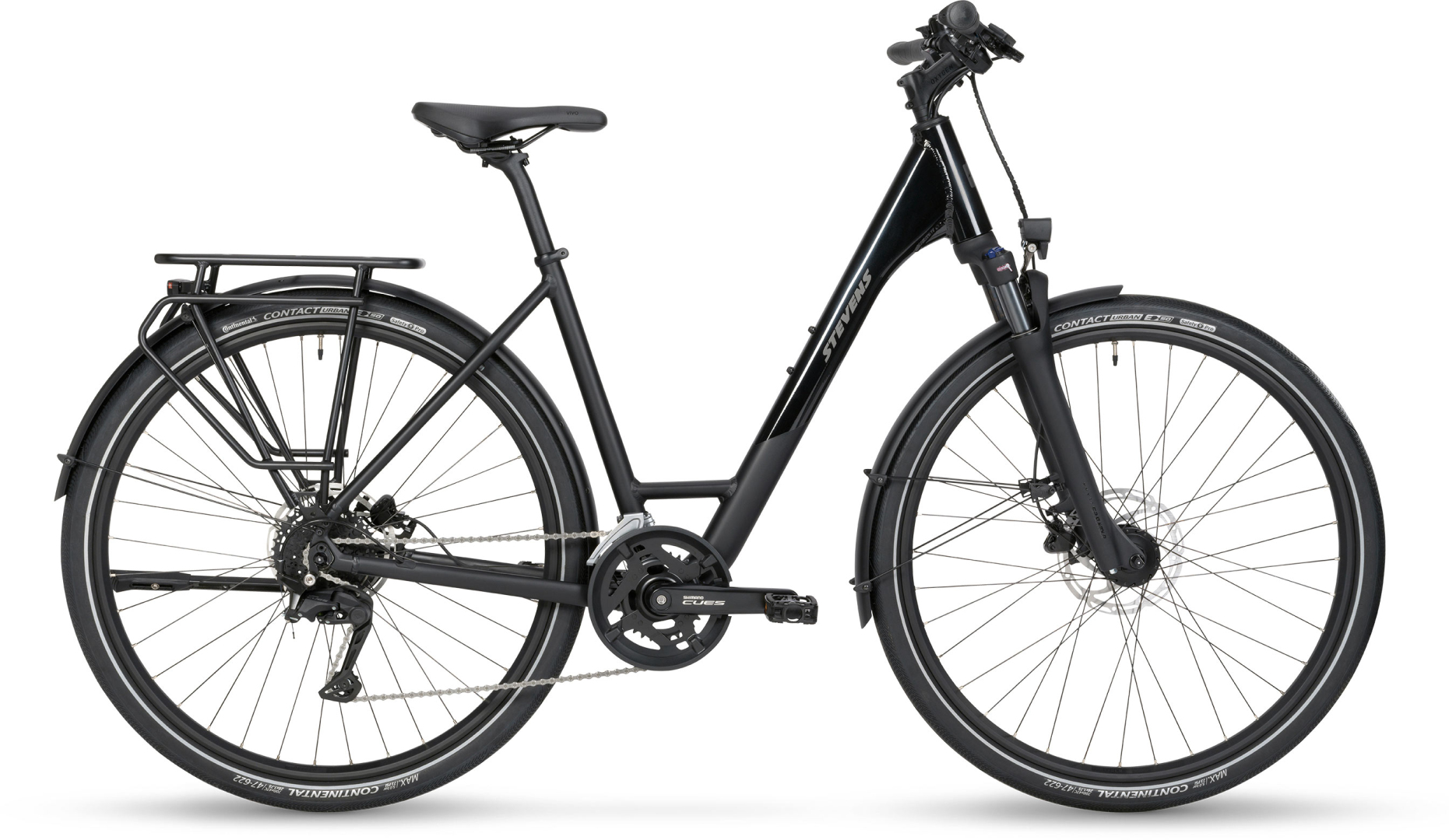STEVENS Aviolo 6.1 je všestranné a spolehlivé trekingové kolo, které klade důraz na komfort a praktičnost. K dispozici je v pánském (HT), nízkém (LT) i dámském rámu (Forma), a to v široké škále velikostí – takže si vybere opravdu každý. O plynulé řazení se stará 2×9 převodový systém Shimano CUES U4000, doplněný výkonnými hydraulickými brzdami Tektro. O pohodlnou jízdu na horších cestách se postará ocelová odpružená vidlice SR Suntour s 63 mm zdvihu a 47mm pláště Continental Contact Urban přidávají jistotu i komfort. Nechybí ani výbava pro každodenní provoz – osvětlení s napájením z dynama, blatníky a nosič.