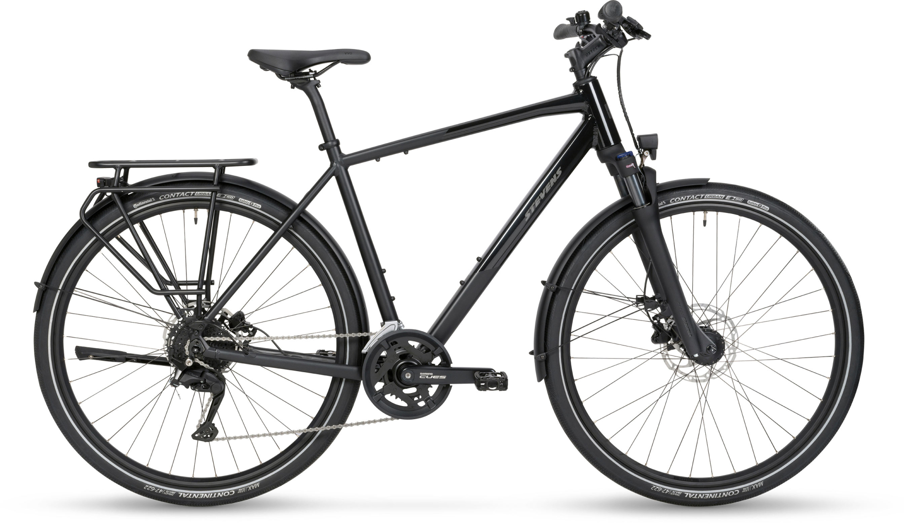 STEVENS Aviolo 6.1 je všestranné a spolehlivé trekingové kolo, které klade důraz na komfort a praktičnost. K dispozici je v pánském (HT), nízkém (LT) i dámském rámu (Forma), a to v široké škále velikostí – takže si vybere opravdu každý. O plynulé řazení se stará 2×9 převodový systém Shimano CUES U4000, doplněný výkonnými hydraulickými brzdami Tektro. O pohodlnou jízdu na horších cestách se postará ocelová odpružená vidlice SR Suntour s 63 mm zdvihu a 47mm pláště Continental Contact Urban přidávají jistotu i komfort. Nechybí ani výbava pro každodenní provoz – osvětlení s napájením z dynama, blatníky a nosič.
