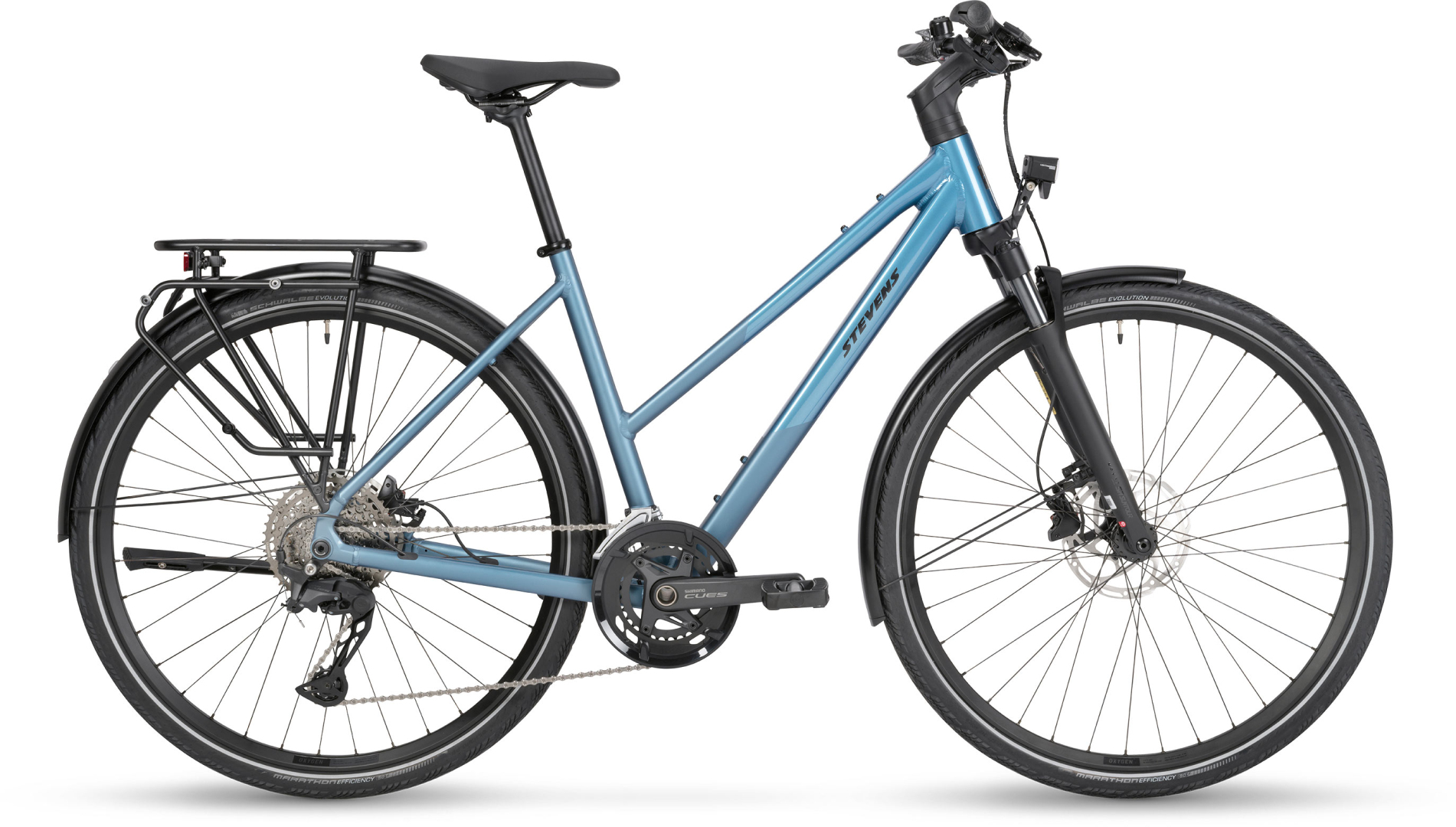 STEVENS Aviolo 8.1 kombinuje komfort a praktičnost s prémiovou výbavou, ideální pro každodenní využití i delší výlety. Lehký hliníkový rám je dostupný v provedení HT, LT a v široké škále velikostí. O pohodlnou jízdu se stará vzduchová vidlice SR Suntour NRX se zdvihem 60 mm, zatímco 2×11 převodový systém Shimano CUES U6000 umožňuje hladké řazení i v náročnějším terénu. Tektro hydraulické brzdy dodávají jistotu v každé situaci a spolehlivé pláště Schwalbe Marathon Efficiency zaručí pohodlí i na delších trasách. Nechybí ani výkonné LED osvětlení s denním svícením.