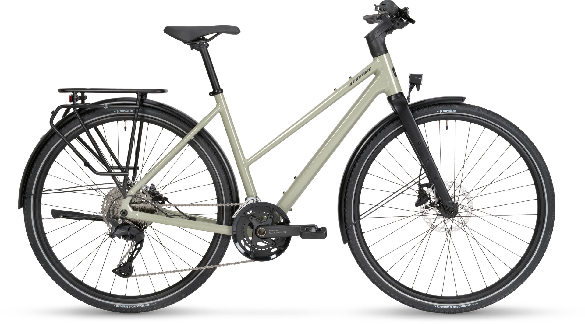 STEVENS Caleta 8.1 je všestranné trekingové kolo určené pro ty, kdo hledají maximální kvalitu a spolehlivost na každé cestě. Hliníkový rám v kombinaci s lehkou vidlicí STEVENS S-Lite zajišťuje pevnost a stabilitu. Pohon Shimano CUES U6000 s 2x11 převody a širokým rozsahem 11–45 zubů zvládne městský provoz i náročnější trasy. Brzdy Shimano Deore BR-MT410 s kotouči 180 mm poskytují bezpečné a plynulé zastavení. Kolo je vybaveno výkonným LED světlem Trelock a zadní svítilnou B+M Xeltec napájenými z nábojového dynama. Pláště Schwalbe G-One Overland šířky 45 mm dodávají jízdě pohodlí a jistotu i na nerovném povrchu.
