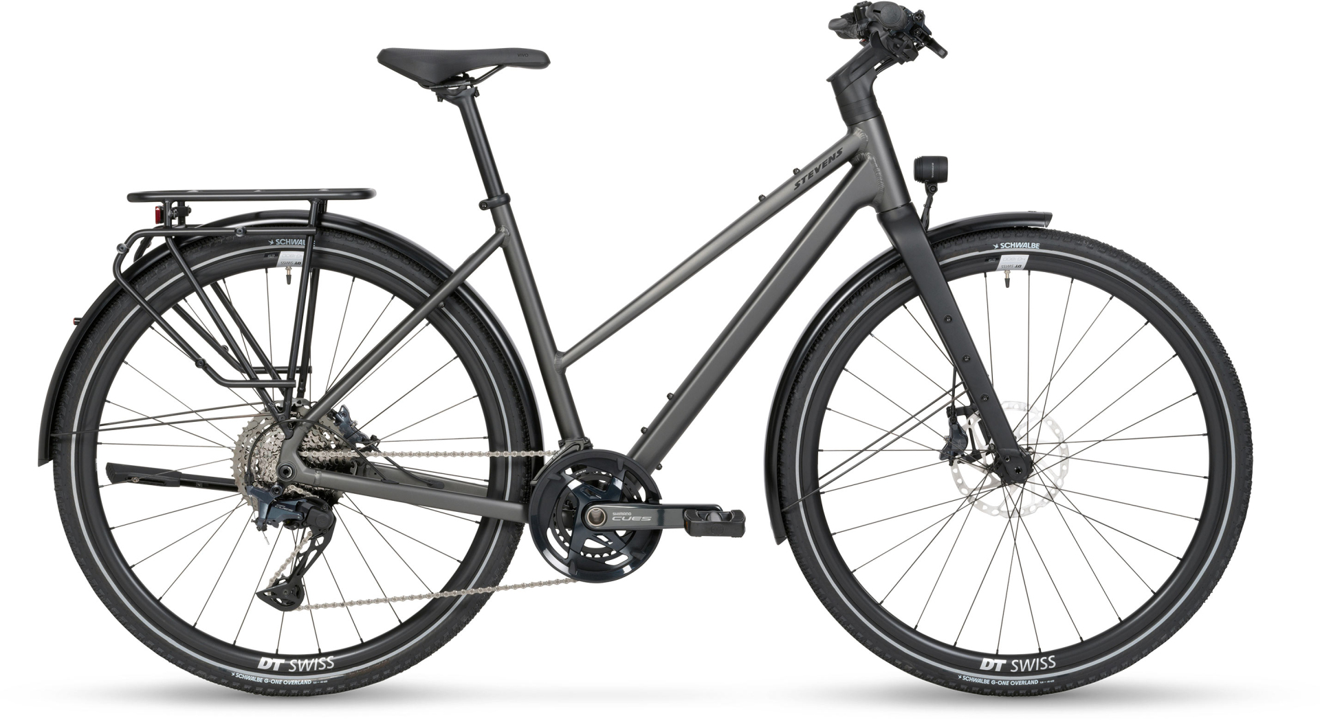 STEVENS Caleta 9.1 posouvá pojem "městské trekingové kolo" na novou úroveň. O řazení se stará kvalitní a přesná 2x11 sada Shimano CUES U8000 s širokým rozsahem převodů (11–45 zubů), která je doplněna o výkonné hydraulické brzdy stejné řady. Kola DT Swiss HG 1800 Spline přináší skvělou tuhost i odolnost, zatímco 45mm pláště Schwalbe G-One Overland se postarají o komfort a jistotu na každém povrchu. Lehkou konstrukci doplňuje hliníková vidlice a stylové osvětlení Supernova, které zajišťuje skvělou viditelnost díky 205 lumenům. Ideální stroj pro náročné uživatele, kteří očekávají výkon, funkčnost i eleganci.