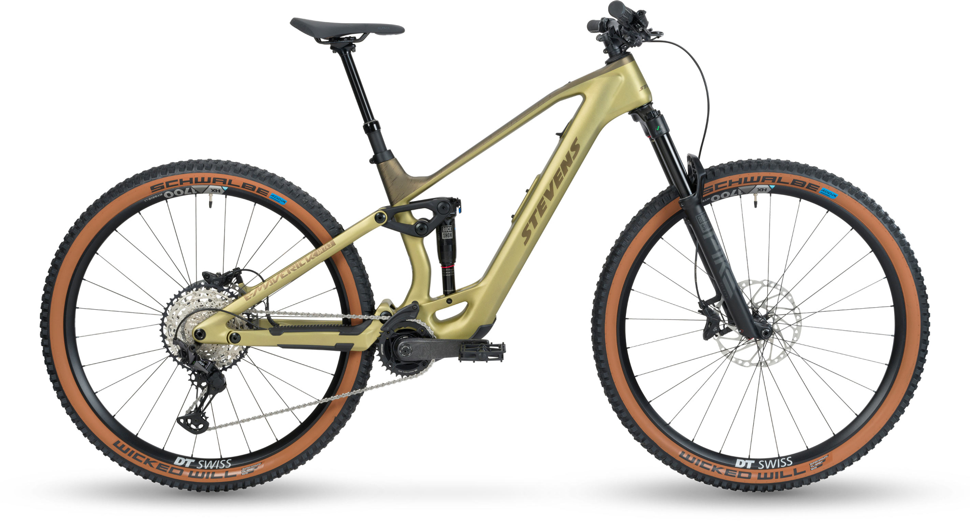 Komponenty Shimano Deore XT a Shimano Deore brzdový systém s 203mm kotouči vpředu i vzadu zajišťují přesné řazení a bezpečné brzdění. Kola DT Swiss HX 1700 Spline a pláště Schwalbe Wicked Will přináší spolehlivý grip a stabilitu. S hmotností 17,9 kg a maximálním zatížením 140 kg je E-Maverick AM 7.4.3 ideální volbou pro jezdce hledající lehkost, výkon a ovladatelnost.