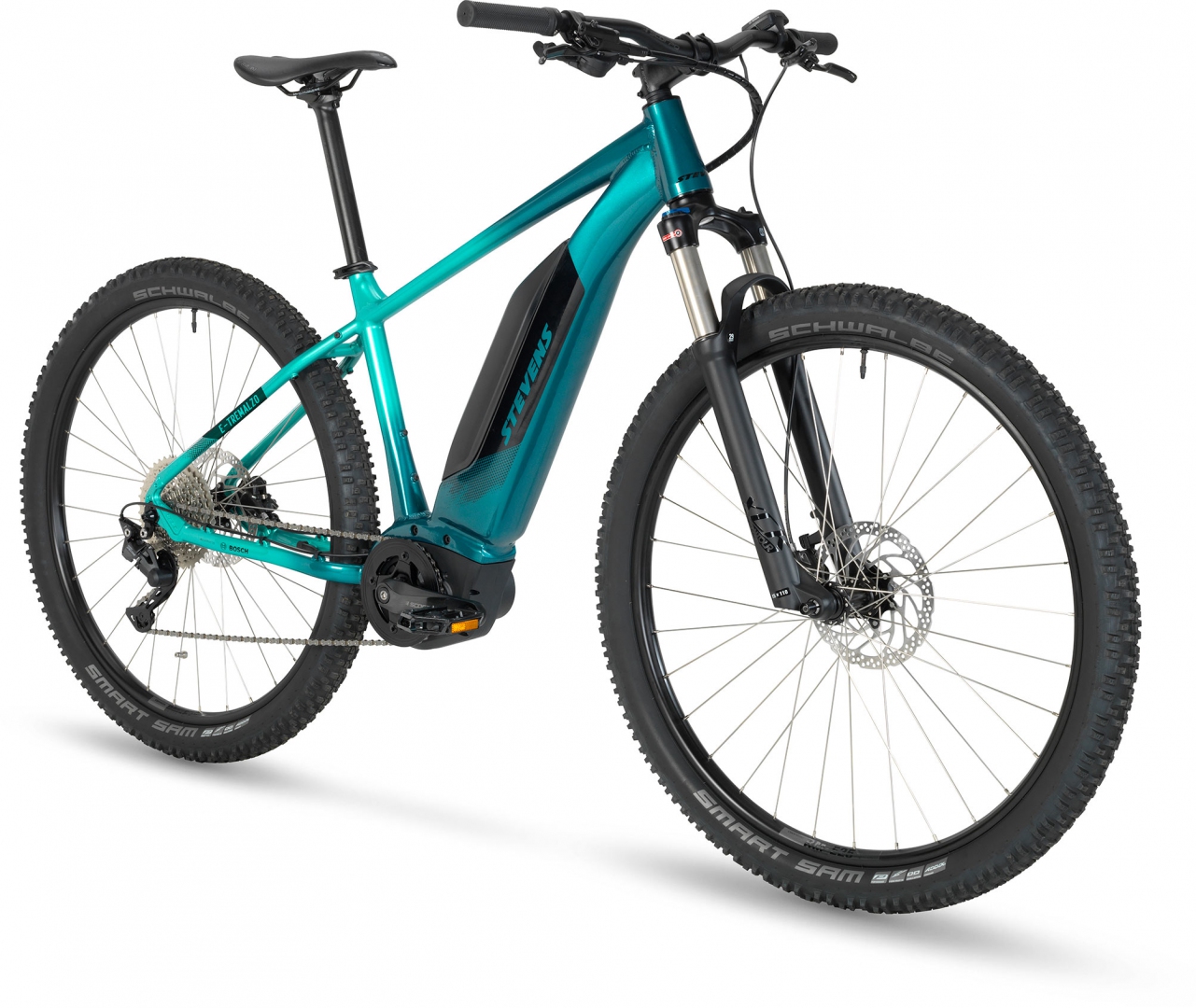 Stevens E-Tremalzo je vstupní branou do světa elektrokol Stevens. Potěší vás mimořádně plynulým pohonem Bosch G3 Performance Line Cruise a polointegrovanou baterií s kapacitou 500 Wh, díky níž na jedno nabití absolvujete i celodenní výlet. Promyšlená geometrie vychází z hardtailů Stevens a sedne každému jezdci, který hledá elektrokolo s nijak přehnaně sportovním ani vzpřímeným posedem. Nejmenší rám z nabídky (14") vozí 27,5" kola, proto skvěle vyhovuje bikerkám. Větší rámové velikosti (16, 18, 20, 22") jedou na 29". Vidlice Suntour XCR34 má zdvih 100 mm, řazení Shimano Deore vás potěší spolehlivostí a s plášti Schwalbe Smart Sam Performance překonáte jakoukoli terénní výzvu.