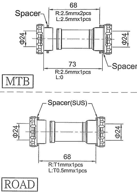 - díky spacerům lze použít pro středové domky rámů 68 i 73 mm (závit BSA)