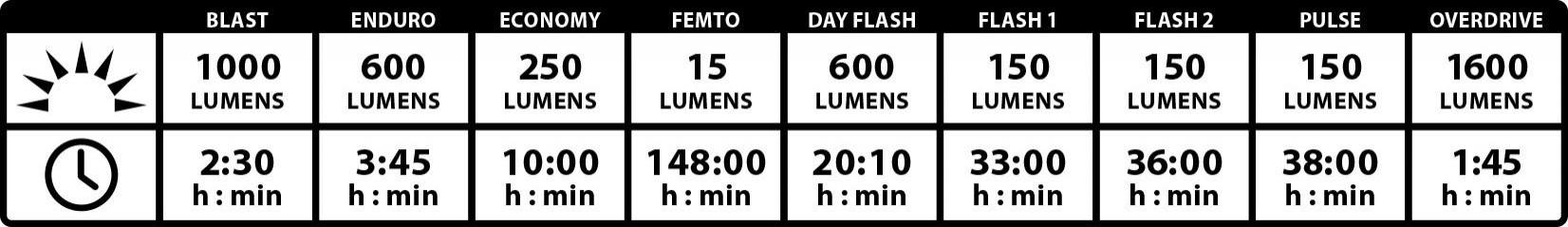 Přední světlo Super Drive 1600XXL s výkonem 1600 Lumenů, má lehké a odolné CNC opracované tělo s výřezy pro boční viditelnost. Superinteligentní indikátor umožňuje kontrolovat uživateli hladinu výkonu až do konce. Světlo má až 7 režimů svícení a blikání. Funkce režimu paměti, kdy se po vypnutí vrátí do naposledy zvoleného režimu. Vylepšená optika Tri-focus, vysokorychlostní nabíjení přes USB. Možnost uchycení na řidítka nebo na přilbu.