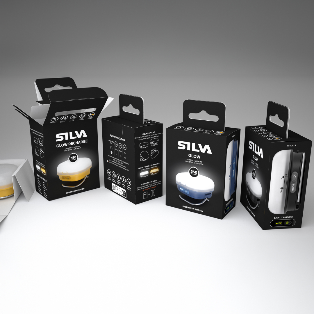 Kompaktní svítilna Silva Glow Recharge zpříjemní vaše večery v kempu, na horách ve stanu, ale bude se hodit i na zahradní párty, či při výpadku elektřiny. Díky klipům z nerezové oceli, ji lze zavěsit, umístit na stůl … a vypolohovat podle potřeby. Duální režim umožňuje přepínat mezi bílým pracovním a útulným žlutým - teplým světlem. Oba módy poskytují rovnoměrně rozptýlené 360° okolní světlo, které lze regulovat ve třech intenzitách světelného výkonu, 5 / 100 / 350 lumenů. Integrovaná kabelem USB-C nabíjecí Li-ion baterie 7,4Wh. Od roku 2025 nejsou nabíjecí USB-C kabely součástí balení.