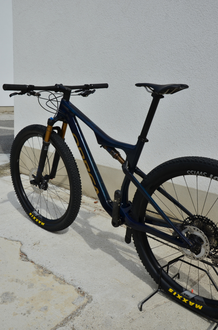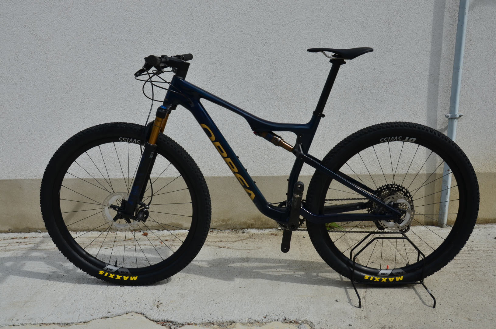 Testovací kolo, U velikosti L karbonová kola DT Swiss 1501, Kolo oblepeno ochranou fólií. Původní MOC 153 900 /170 080 Kč Rám - Orbea Oiz Carbon OMX, Fiberlink, Boost, PF BB, UFO2, I-line shock Vidlice - Fox 32 Float SC Factory 100 FIT4 Remote-Adj Push-Unlock QR15x110 Kashima Tlumič - Fox i-line DPS Factory 100mm Remote Push-Unlock Evol Kashima custom tune190x40mm Zámek tlumiče - OC Squidlock 3-position Zapletená kola - DT Swiss XR-1650 Spline 25c TLR CL, Star Ratchet, Boost Pláště - Maxxis Rekon 2.35" 120 TPI Exo TLR Řadící páčky - Shimano XT M8100 I-Spec EV Přehazovačka - Shimano XTR M9100 SGS Shadow Plus Kliky - Race Face Next-SL 34t Řetěz - Shimano M8100 Kazeta - Shimano CS-M8100 10-51t 12-Speed Brzdy - Shimano XT M8100 Hydraulic Disc Sedlo - Selle Italia SLR Boost Fill Titanium Rail 316 O7 mm Sedlovka - OC2 Carbon 31.6 Offset 0 Řídítka - OC3 Carbon Flat 31.8mm 760mm Představec - OC3 31.8mm interface -8o Hlavové složení - Acros Alloy 1-1/8 - 1-1/2" Integrated
