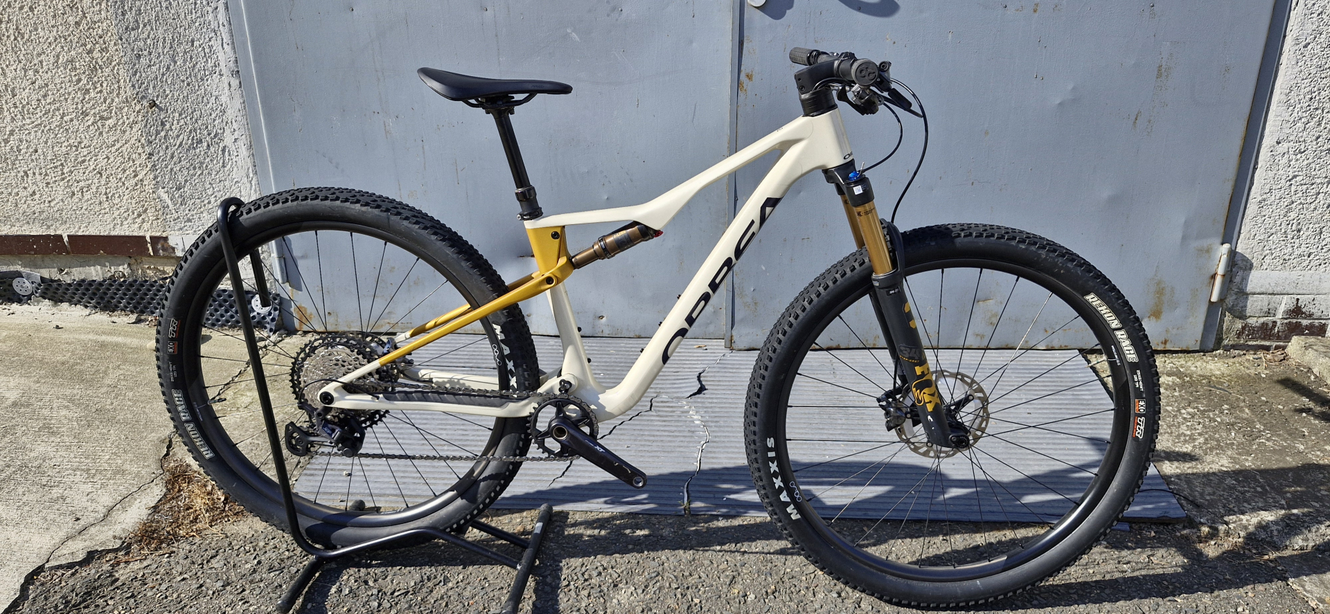 Demo kolo ORBEA OIZ M10, velikost S, barva bílo/zlatá, K prodeji jednu sezonu provozované demo kolo od distributora ORBEA kol. Kolo pravidelně servisováno. Polepeno ochranou fólií proti poškození při manipulaci nebo jízdě. Původní MOC cena 142 990 Kč, aktuální cena 89 990 Kč. Rám - Orbea Oiz Carbon OMR, Fiberlink, Boost, BSA, SIC, UFO, I-line shock Vidlice - Fox 34 Float SC Factory 120 FIT4 Remote-Adj Push to Lock QR15x110 Kashima Tlumič - Fox Float SL Factory 120mm Remote Push-lock Evol Kashima custom tune 190x45mm Zámek tlumiče - OC Squidlock MP11, Suspension + Dropper Zapletená kola - Oquo Mountain Performance MP30TEAM Pláště - Maxxis Rekon Race 2.40" WT 120 TPI Exo TLR Řadící páčky - Shimano XT M8100 I-Spec EV Přehazovačka - Shimano XT M8100 SGS Shadow Plus Kliky - Shimano XT M8120 32t Řetěz - Shimano M7100 Kazeta - Shimano CS-M8100 10-51t 12-Speed Brzdy - Shimano XTR M9100 Hydraulic Disc Sedlo - Fizik Vento Argo X5 Alluminium 140mm Sedlovka - OC Mountain Control MC21, 31.6mm, Dropper Řídítka - OC MP10 Mountain Performance Carbon, Width 760, Sweep 9 Gripy - OC Lock On Představec - OC Mountain Performance MP21, -6o Hlavové složení - Alloy 1-1/2", Black Oxidated Bearing Kole ke shlédnutí a případnému otestování na prodejně v Luhačovicích.