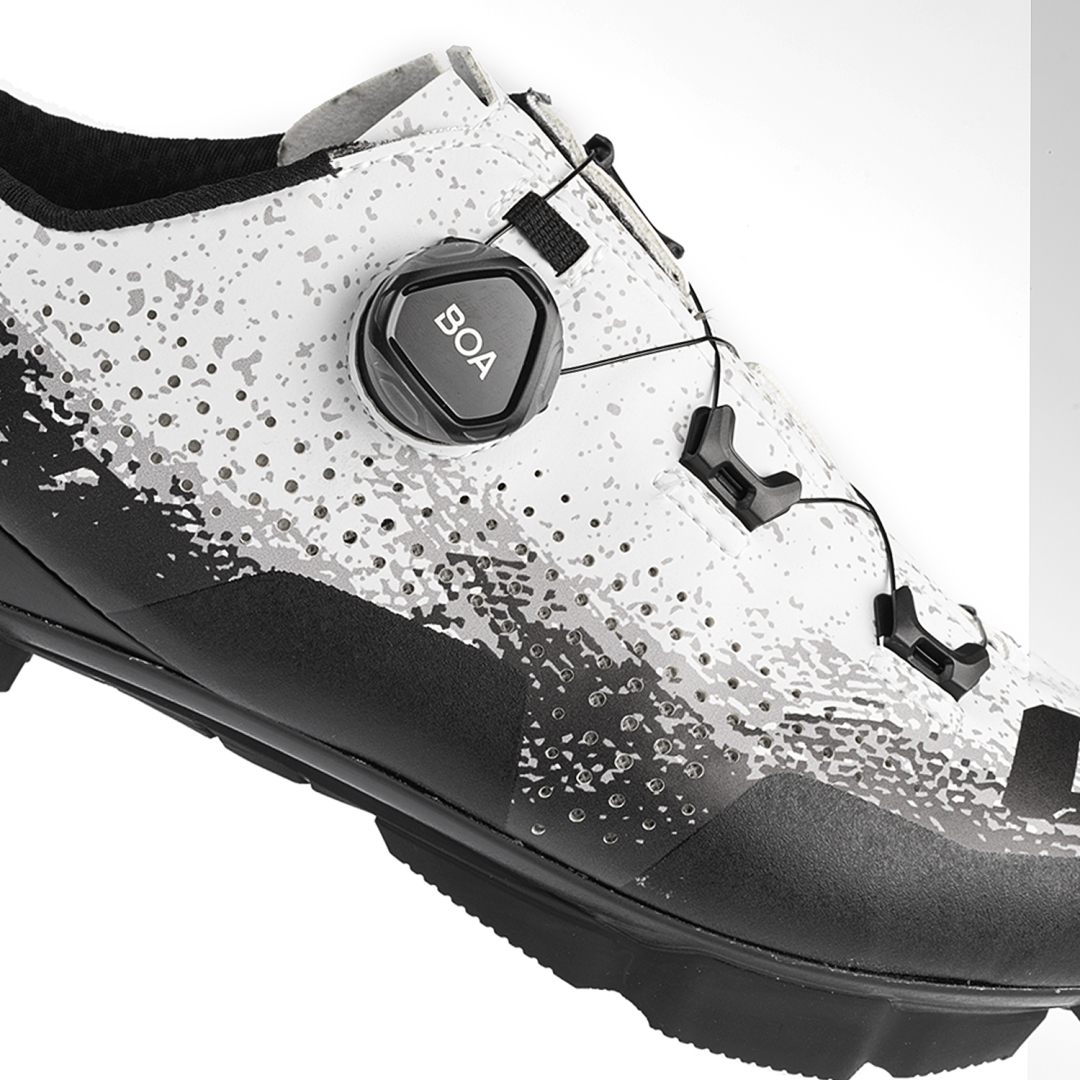 3870-024 Ideální pro ty, kteří hledají funkční botu, vhodnou pro všechna vaše dobrodružství a do jakéhokoli terénu. Zvláštní design a barva jsou 100% Gravel Style! Svršek se systémem G.AIR VENTED zaručuje maximální ventilaci díky důležité přítomnosti otvorů s variabilním průměrem, situovaných na celé vnější i vnitřní straně boty až po přední část a na jazyku. Systém zapínání s mikro nastavitelným kolečkem BOA L6 DIAL C spolu s 5 vodítky tkaniček umístěnými na velké ploše svršku zaručuje rovnoměrné zapínání a rozložení tlaku po celé délce nártu. Vnější část kolečka BOA je vyrobena z měkké gumy, která zajišťuje vynikající přilnavost při používání. INTEGRATED ANTI SLIP HEEL CUP: Zcela nová integrovaná protiskluzová pata se nedeformuje ani neoslabuje. Díky svému tvaru působí proti zánětu šlach, umožňuje nejlepší stabilitu a kontrolu chodidla. Podrážka MTB 2DENSITY SOLE"je navržená speciálně pro horská kola. Struktura podrážky kombinuje materiály nylon a sklolaminát, díky čemuž je odolná, lehká a tenká. Dezén byl navržen tak, aby zajišťoval maximální přilnavost a stabilitu a měl vynikající odolnost vůči různým typům terénu. Dva odnímatelné přední kolíky dodávají této botě lepší trakci v proměnlivém a blátivém terénu.