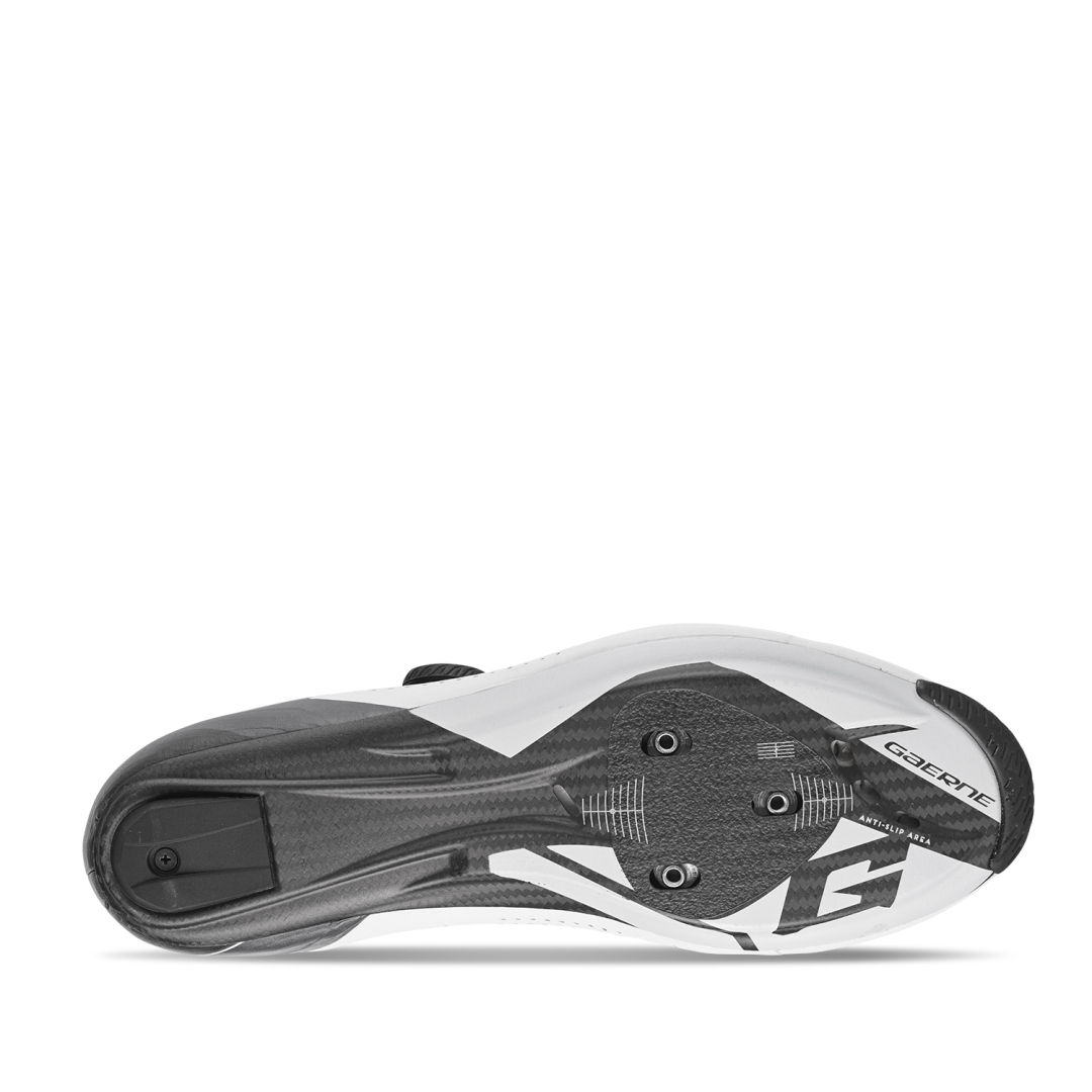 Model G. JET 3680-007 je nejnovější inovací v naší řadě vysoce výkonné cyklistické obuvi, který byl vyvinut na základě rozsáhlého výzkumu v našem oddělení výzkumu a vývoje a testován s profesionálními cyklisty, kombinuje technologii, styl a výkon. Svršek boty je z materiálu G.Frametex, což je inovativní materiál vyvinutý společností Gaerne, který zajišťuje větší stabilitu nohy a zvyšuje lehkost boty. Strategicky rozmístěné laserové perforace zajišťují vynikající ventilaci, díky níž zůstanou vaše nohy v chladu a suchu po celou dobu jízdy. INFIT CLOSURE SYSTEM 1.0 je vybaven diferencovaným zónovým nastavením s asymetrickým designem ovládaným dvěma otočnýma kolečkama BOA® Li2, které zajišťují lepší stabilitu při šlapání, přesné působení síly na pedál a tím pádem optimalizovaný přenos energie a minimalizaci tlakových bodů. Utahovací kolečka BOA® Li2 DIAL F se mohou pochlubit elegantním a nízkoprofilovým designem. Pogumovaný povrch zajišťuje vynikající přilnavost a kontrolu. Kolečko Li2 se utahuje otáčením směrem ven a povoluje otáčením v opačném směru, což umožňuje přesné a snadné nastavení. Jazyk boty s technologií FIT TONGUE 1.0 je konstruován s proměnlivou tloušťkou a obsahuje high-tech tlumicí vrstvu pro větší pohodlí a prodyšnost. ANATOMICAL HEEL CUP 1.0 - technologie patní části, která zlepšuje stabilitu a kontrolu nohy a díky vnitřní protiskluzové úpravě omezuje nežádoucí pohyb, aniž by jste museli tretru extrémně utahovat. Výsledkem je vynikající opora a lepší přenos energie. Anatomická stélka je navržená pro maximální stabilitu a pohodlí, poskytuje zesílenou podporu v oblasti paty a nártu. Strategicky umístěné perforace jsou v souladu s větracími otvory podrážky, zlepšují proudění vzduchu a vytvářejí ideální mikroklima uvnitř boty. Materiál, ze kterého je vyrobena je samozřejmě rychleschnoucí a zabraňuje hromadění vlhkosti, takže vaše nohy zůstanou svěží a suché i během intenzivní jízdy. GAERNE EPS LIGHTWEIGHT FULL CARBON SOLE 12.0 Ultralehká a ultratenká, podešev z uhlíkových vláken zajišťuje, že každý watt síly je přenesen na pedály. Čtyři větrací otvory zaručují větrání uvnitř boty. Podrážka má protiskluzovou vložku ve špičce a vyměnitelnou podpatěnku v zadní části. Možnosti polohy zarážky byly ve srovnání s předchozí podrážkou zvýšeny o 9 mm a měřítko vytištěné na podrážce vám umožní zapamatovat si polohu zarážky. Vynikající index tuhosti 12. Hmotnost: 244g (vel. 42)