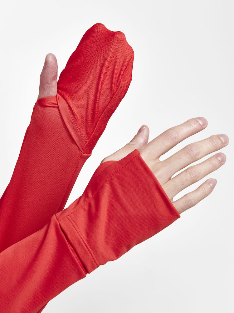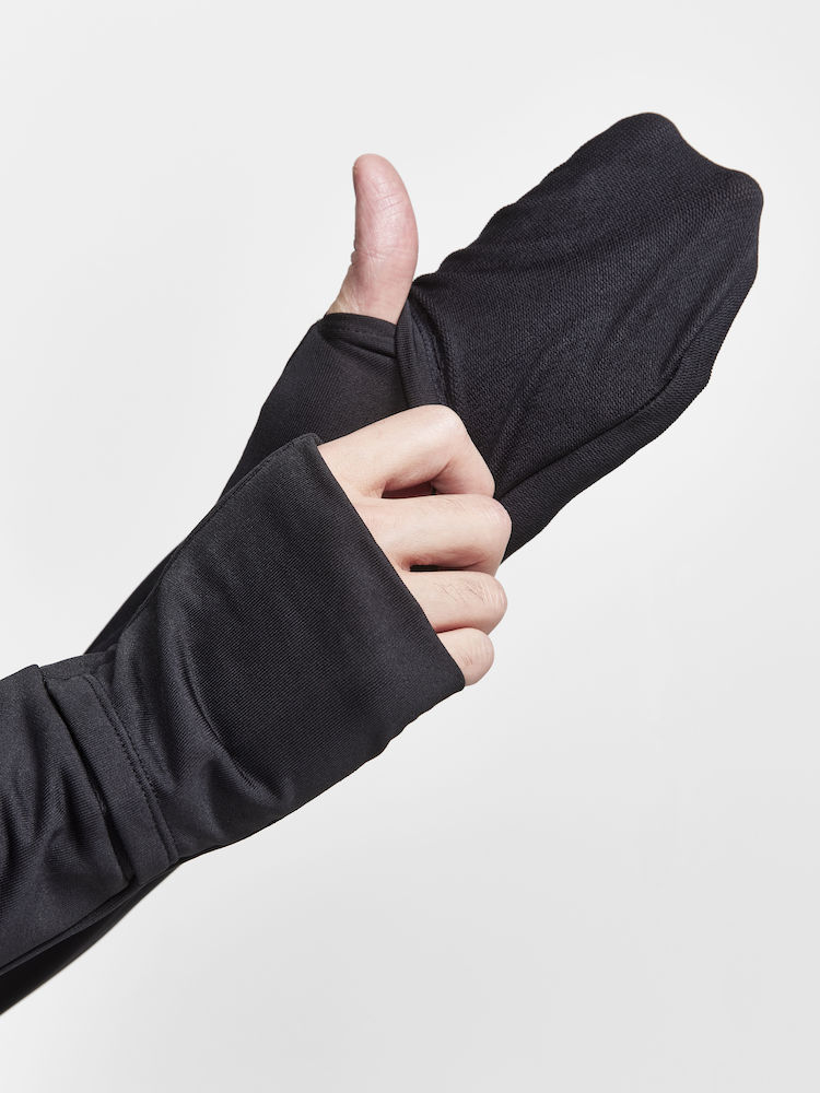 - rukávy ukončeny do široké manžety s otvorem pro přetažení přes palce