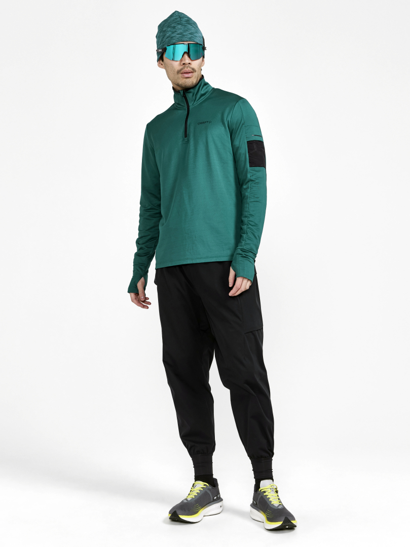 Pánské běžecké triko se stojáčkem na zip CRAFT ADV SubZ lze nosit samostatně jako 2. vrstvu v mírnějších podmínkách nebo jako podvlékací vrstvu pod bundu v mrazivém počasí.