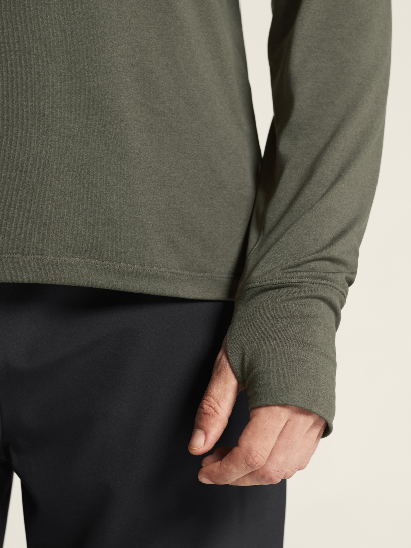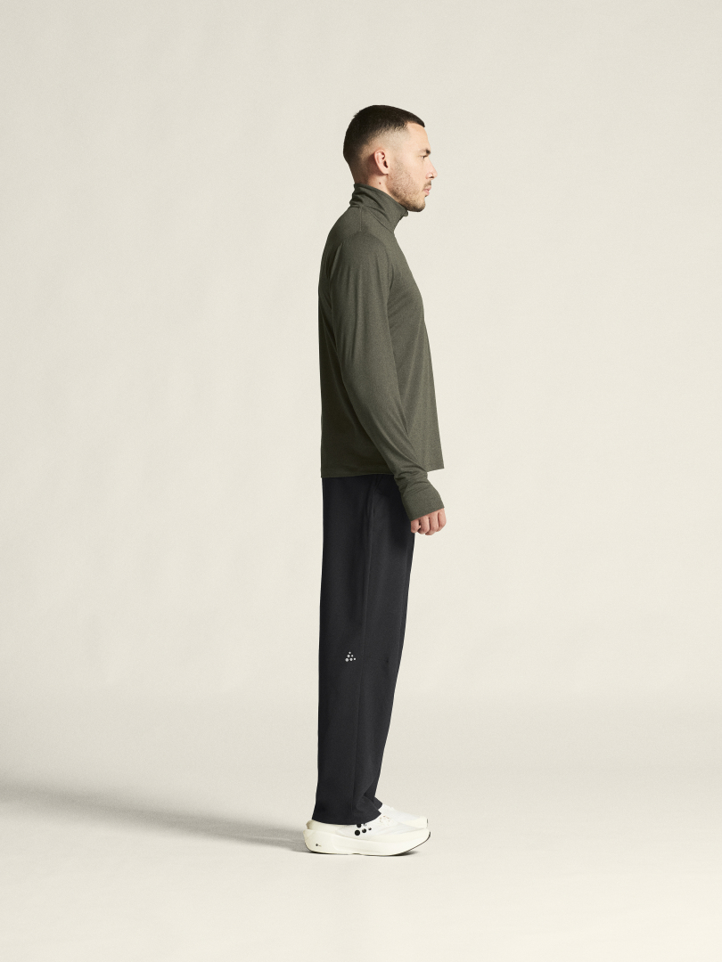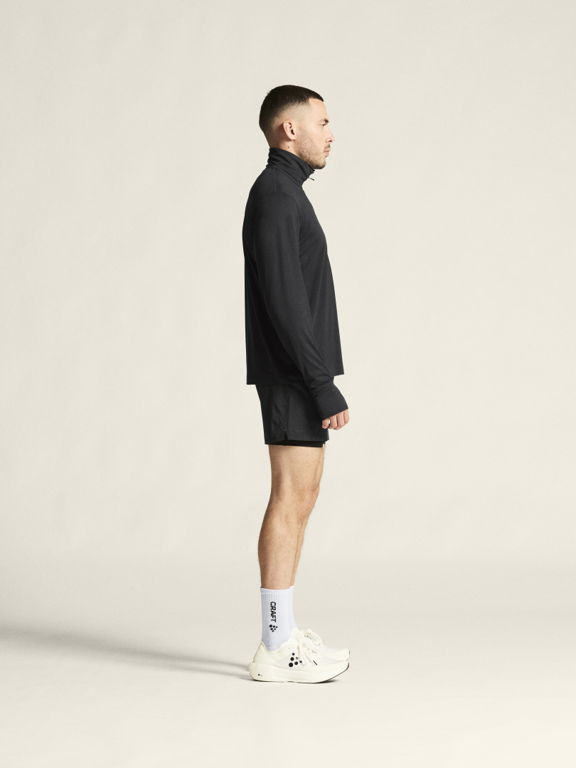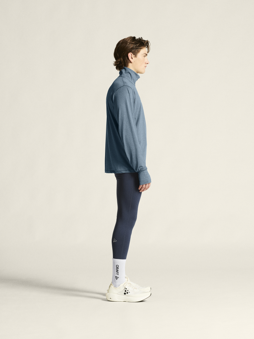 CRAFT Flow HZ LS je příjemný a funkční halfzip, který je možné použít jako základní vrstvu stejně dobře jako druhou, či svrchní vrstvu pro širokou škálu aktivit. Rolák kombinuje recyklovaný polyester s elastanem a má velmi jemný chloupek na povrchu pro příjemnější pocit. Střih je volnější než u standardního funkčního prádla a poskytuje tak optimální volnost pohybu.
