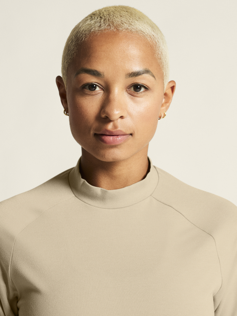 Složení: 70 % recyklovaný polyester, 26 % viskóza, 4 % elastan