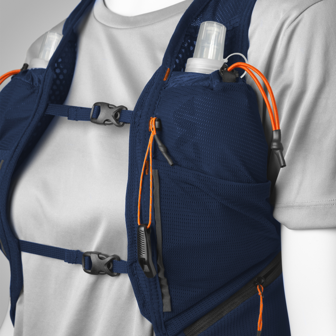 Strive Ultra Light je nejlehčí a nejflexibilnější vesta od Silvy. Je vyrobena z lehkého a dobře prodyšného materiálu. Když se počítájí vteřiny, je důležitý každý detail, dvě kapsy na hrudi jsou určeny pro měkké láhve o objemu 500ml - lze dokoupit, zbylé kapsy jsou ideální na gely a tyčinky. Jedna z bočních kapes je uzavíratelná na zip a druhá volně přístupná ze síťoviny, kapsa na zádech pojme lehkou bundu a baterii čelovky. Vesta je vybavena píšťalkou a reflexními detaily. Vlastnosti: - nízká hmotnost XS/S 139g, M 157g, L/XL 178g - výběr velikosti podle obvodu hrudníku XS/S 76-91cm, M 92-101cm, L/XL 102-110cm - prodyšný materiál s dobrým odvodem potu - kapsy na měkké láhve 2x500ml - lze dokoupit - čtyři snadno přístupné přední kapsy na gely, tyčinky … - voděodolná boční kapsa na zip a volně přístupná síťovaná - píšťalka a reflexní detaily pro vaši bezpečnost - prát ručně do 30°C