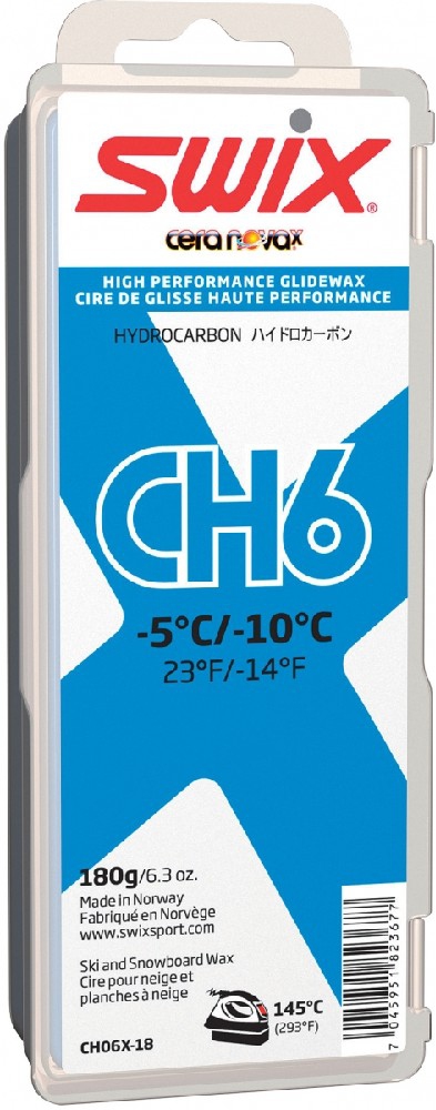 Náš standardní CH6 byl jedním z největších úspěchů původního systému vosků Cera Nova a přes důkladné testování jsme neobjevili lepší alternativu. Tento vosk je dostupnou volbou jak pro trénink, tak závody nebo na přípravu a promazání „studených“ lyží. CH06X je vysoce odolný a výkonný na většině sněhových podmínek včetně umělého a ledovcového sněhu. Teplotní rozsah od -5°C do -10°C. Doporučená teplota zažehlování: 145°C.
