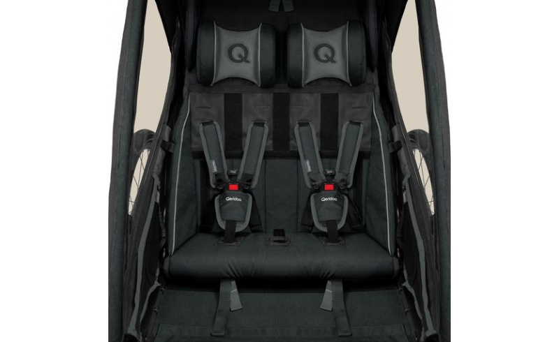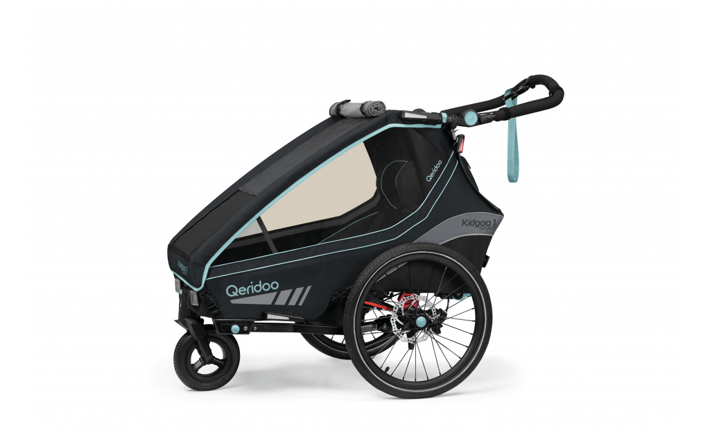 Nejoblíbenější dvoumístný dětský vozík Qeridoo KidGoo 2 ve verzi Sport, standardně vybaven kotoučovými brzdami.