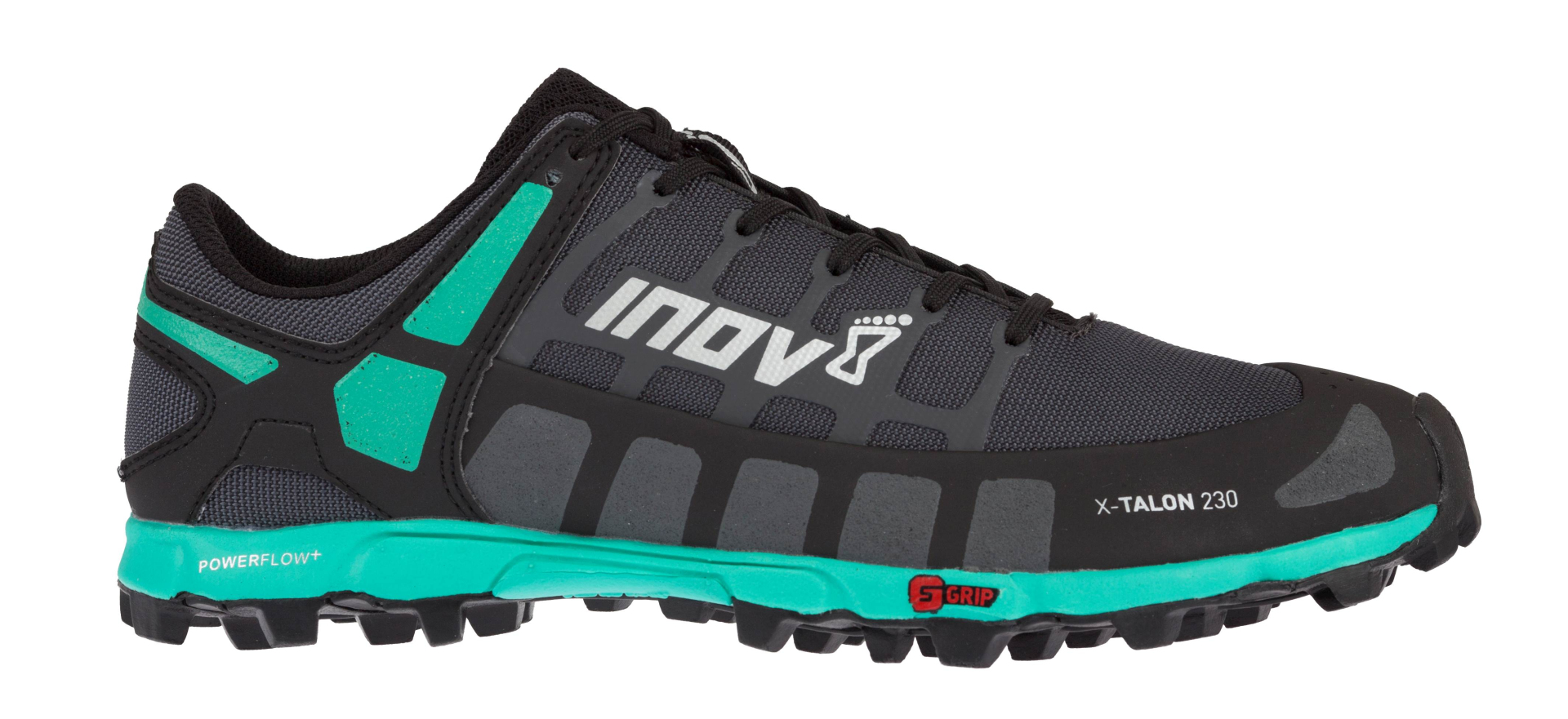 Když přišel v roce na trh X-TALON 212, byla to revoluce. Lehká bota, flexibilní a vnímavá mezipodešev a podešev s velmi agresivním dezénem. Pro všechny příznivce orientačního běhu, fellrunningu, překážkových běhů a těžkého, technického trailu tak vznikla nová kategorie běžecké obuvi – offroad. Z 212ek se stal etalon offroadové boty, kterým se inspirovala celá řada dalších výrobců. Dnes, po 10 letech produkce 212ek u příležitosti 15 let existence inov-8 přichází nová evoluce, X-TALON 230. První zásadní inovací je směs podešve, tzv. STICKY GRIP (nejedná se o graphene). Podařilo se nám vytvořit novou směs pryže, která na základě všech testů ukazuje výrazně lepší kontaktní vlastnosti v různém prostředí. Celkem 43 různě tvarovaných a na ploše rozmístěných špuntů má výšku 8 mm. Fantastický kontakt na měkkém povrchu umocní špičková flexibilita a propriocepce. Laboratorní testy pak ukázaly výrazně lepší otěruvzdornost a adhezi na tvrdém povrchu. Dalším významnou změnou oproti 212ce je rockplate. Mezi podešev a mezipodešev jsme vložili tenký syntetický polymer, meta-plate, který díky své konstrukci kopírující tvar plantární fascie, ochrání chodidla před proražením o ostré kameny. Meta-plate neomezuje flexibilitu ani vnímavost, je zde vložen jen pro ochranu chodidel. Mezipodešev powerflow+ se sklonem pata-špička 6mm nabízí skvělou propriocepci, agilitu, okamžitou odezvu na probíhaný terén a díky meta-plate se použití této boty posouvá také více do těžkého a technického trailu. Svršek je napnut na úzkém kopytě precision. Kombinací různého střihu svršku a použitím různě pevných, odolných a pružných materiálů se mohou jednotlivé modely lišit ve výsledném fitu, i když jsou vyrobeny na stejném kopytě. A právě proto nově upřesňujeme šířku všech modelů také číselným parametrem 1-5 (1=nejužší, 5=nejširší). X-TALON 230 má pevnou obsázku kolem celého obvodu boty, velmi pevný svrškový materiál z balistického nylonu a proto výsledný fit řadíme na parametr P1. Využití: 80% trail, 20% silnice. Špičková bota pro offroad, překážkové běhy, orientační běh, fellrunning, krosy a technické traily. Vnímavý běžec ocení hravost této boty Značková recenze: Nezávislá recenze Rungo.cz: Výška mezipodešve v patě 13 mm Výška mezipodešve ve špičce 7 mm Drop 6 mm Výška špuntů 8 mm Vkládací stélka 3 mm Váha 230 g (UK8)