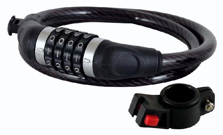 Robustní zámek s držákem na rám nebo sedlovku s otevíráním na volitelný číselný kód.Vysoká míra bezpečnosti,délka je 950 mm,průměr 12 mm,hmotnost 350g